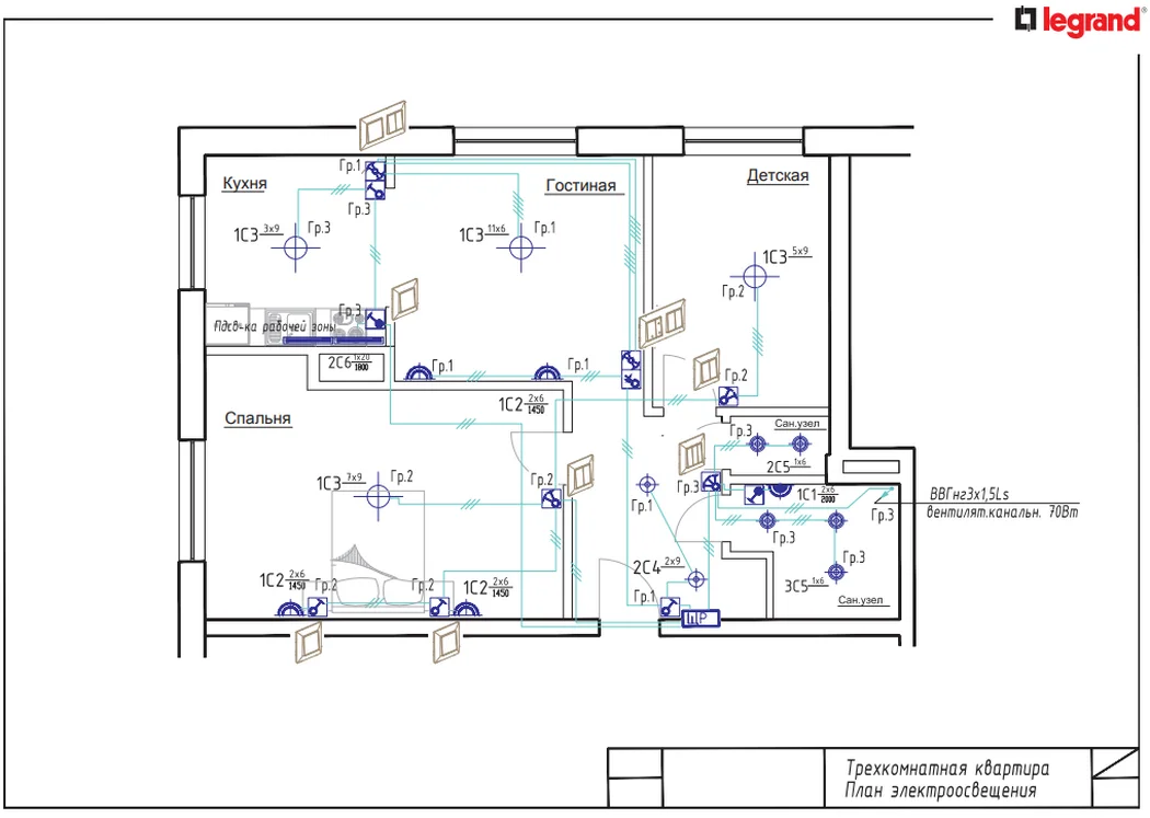 Нарисуйте план разводки проводки с указанием всех точек подключения.