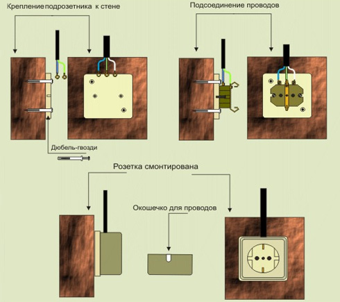 Подключите провода к соответствующим клеммам на розетках или выключателях.